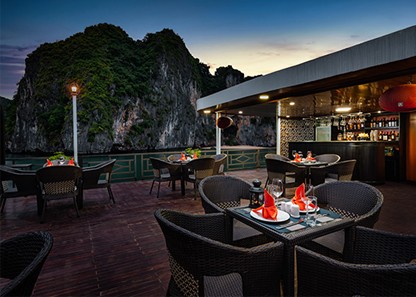 The restaurants must be one of the best highlights of La Pandora Boutique Cruise, showcasing a cozy but luxurious atmosphere. The Main Bar of the Restaurant on the second deck offers a wide range of drinks and a selection of fine wines from around the world. Take your time to enjoy the most romantic and relaxing scenery from the beauty of nature and the restaurant setting, while chowing down tasty Vietnamese food. The Sky Restaurant on the top of the Cruise along with its bar is also an amazing spot to rest and enjoy the fresh air and a superb panoramic view of Lan Ha Bay. There is also a projecting system that is always prepared for special events.