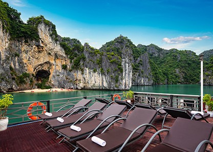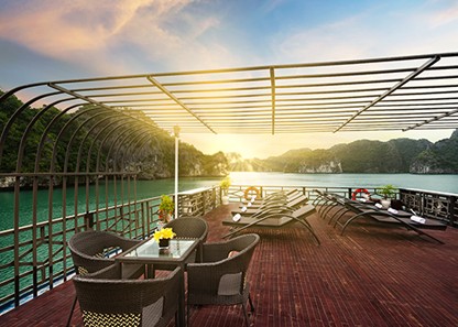 Winding down after a day full of exciting activities, or attempting to fish some squids, any activities that you can think of to relax on board is available thanks to the spacious sundeck. The Sundeck measures up to 200m2 on the upper deck with soft lying chairs, perfect for relaxing, sunbathing, and enjoying the magnificent scenery of Lan Ha Bay.