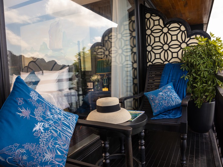 If you are not comfortable sharing your bed or want to keep it private, the Halong Trio Suite is for you with a large space and 3 single beds. The suite is equipped with full world-class luxury and modern comfort facilities while you also have a full ocean view and a private balcony.