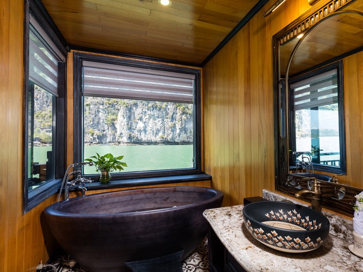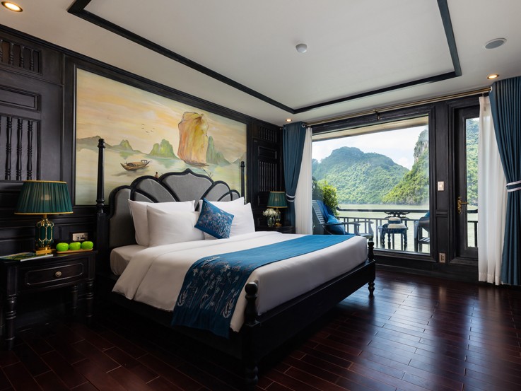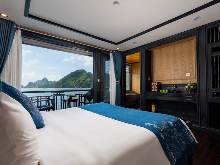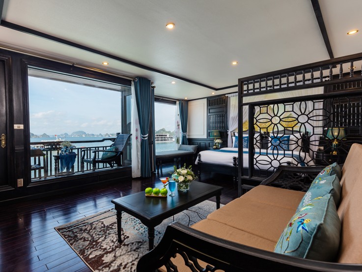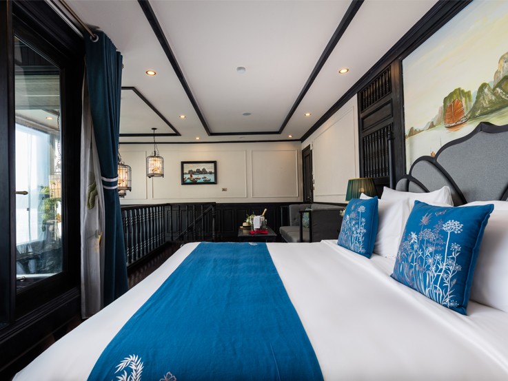Halong Suite is equipped with the most comfort and luxury amenities and designs, promising a wonderful experience of famous places among nature. It is located on the second deck and is suitable for couples or families with a kid.