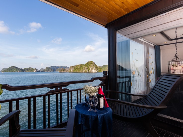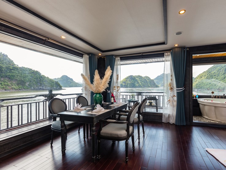 Located on the third deck with a large space and luxury facilities, Lan Ha Junior Suite offers an ocean view through the big glass window. Therefore, tourists can enjoy the wide range of dramatic mountains and the peace of crystal water under this cruise.