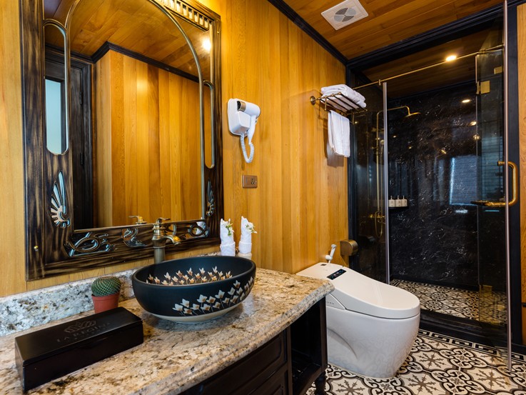 This cabin has a space of 45m2 which is comfortable with many luxury and modern facilities. Lan Ha Suite also provides a panoramic sea view to tourists to optimize the experience. Check the details for a better understanding of this room. Then book it and start to create a memorable journey with the Vietnam Travels team.
