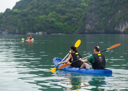 The cruise departs to tour Lan Ha Bay. You may relax and avoid crowds while savoring a meal with the distinct flavor of Vietnamese food.