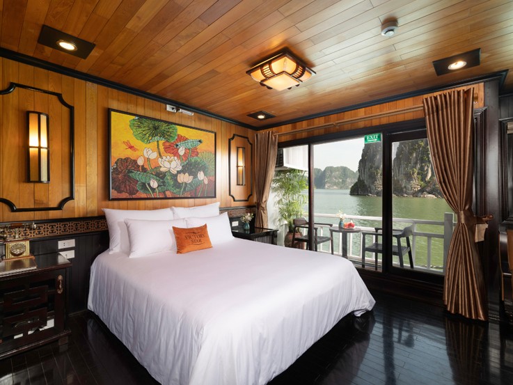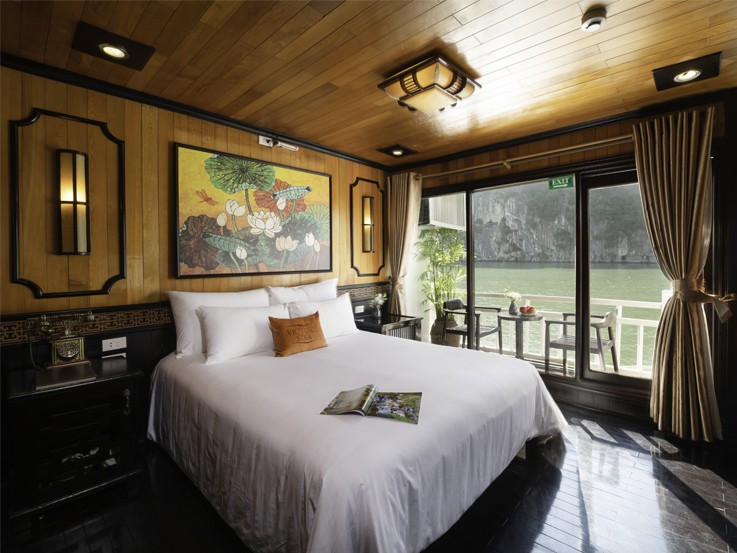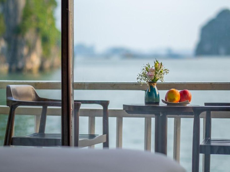 If you desire the panoramic views of Halong Bay without interruption and complete modern facilities, the King Suite is for you! Enjoy the luxurious amenities of a King Suite with a Private Balcony, Jacuzzi and don't forget to treat yourself on your special night with complimentary wine and fruit amenities!