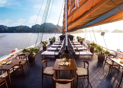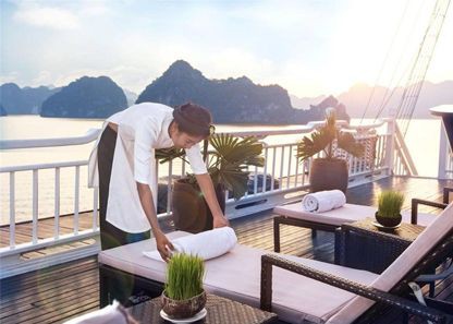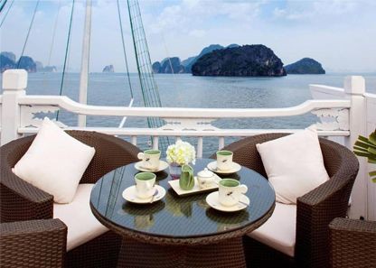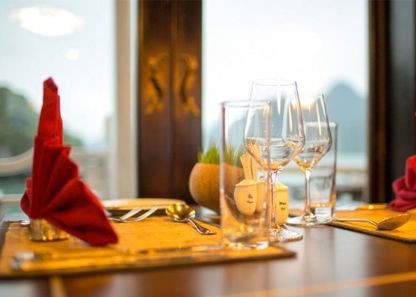 Your dinner can be served in the dining room OR in your private balcony or terrace based on your preference. If you want to have a romantic and wonderful dinner in a private space while chatting with your partners, we would love to serve you in you enjoying the beauty of Halong Bay and making memorable moments with your partners and family. All you need to do is letting us know and we will satisfy you all.