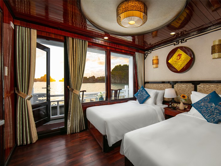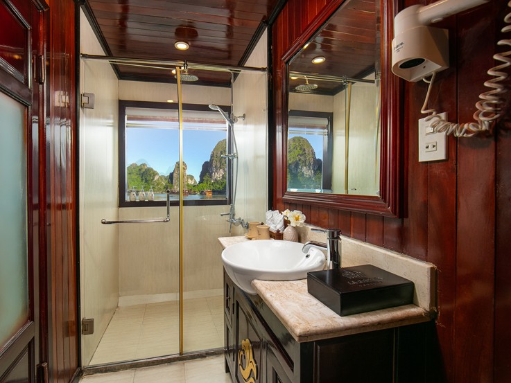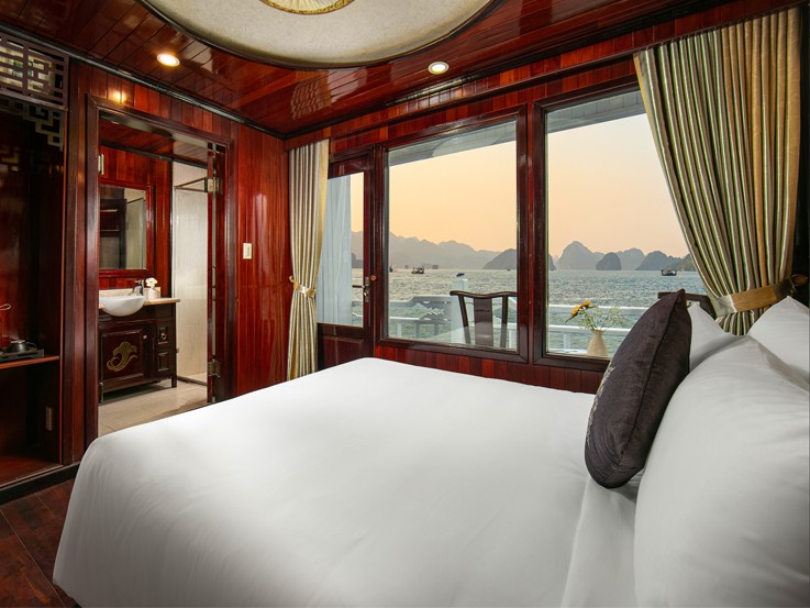 Located on the second floor, the Deluxe Balcony cabin provides an ideal space to relax and admire a wide range of mountains while boarding. It has its own balcony, ensuring a private space to spend your time with your partner. Don’t miss the chance to discover Halong Bay and Bai Tu Long Bay today.