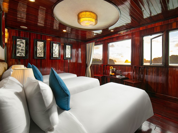 Located on the second floor, the Triple Deluxe cabin offers a large space for a group of passengers with an ocean view of a wide range of mountains and crystal water. Therefore, you can share wonderful memories with your companions during the voyage. Your stay is equipped with all luxurious facilities, ensuring a comfortable trip.